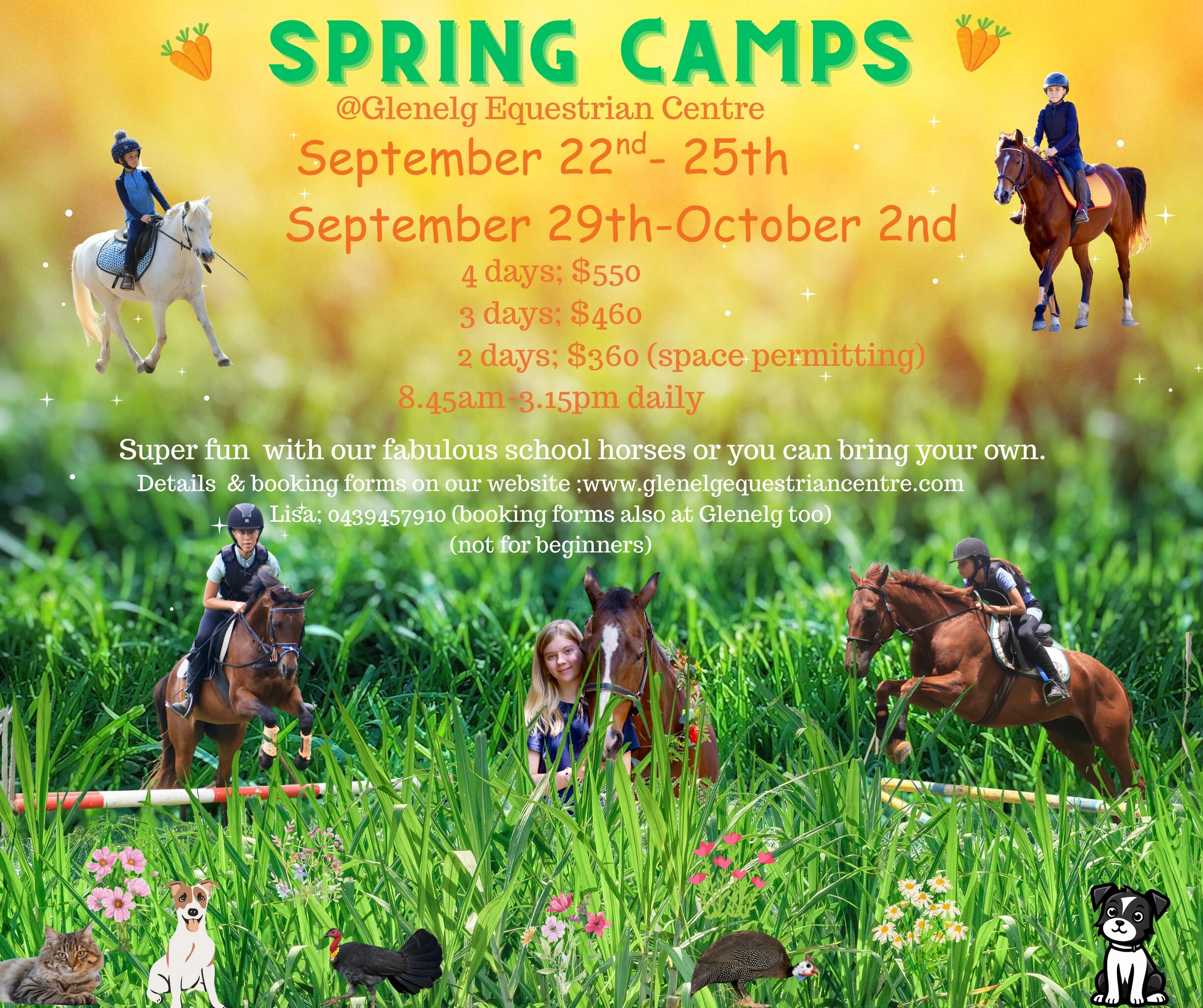 camps are not suitable for beginners and any non regular Glenelg riders may be asked to attend an assessment lesson prior to booking or we may in some circumstances accept a video assessment.